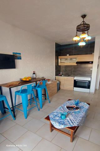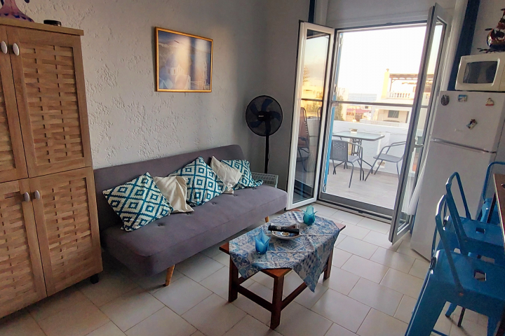 1 bedroom, 1 shower room, 1 living room including a small equipped kitchen, coffee machine, oven, toaster, electric kettle etc. 1 sofa/bed, tables and chairs.