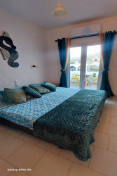 Large balcony/terrace with mountain view from the bedroom and large balcony/terrace with sea view from the living room.